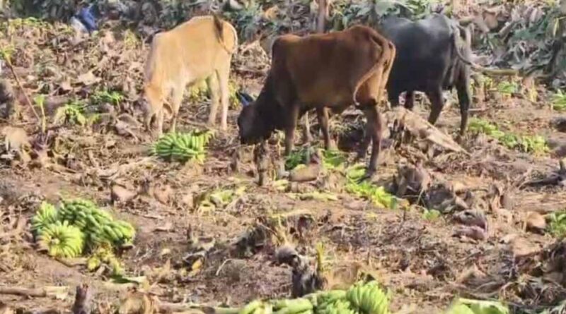 किसानों की मजबूरी: बाजार में कीमत धड़ाम, खेत में गाएं खा रही केले की फसल