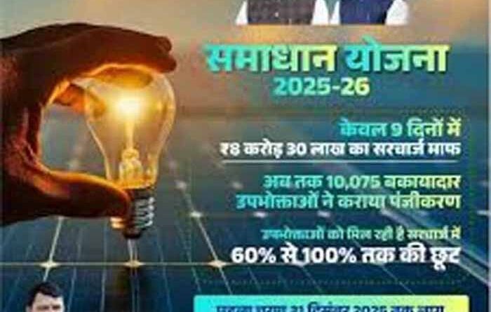 भोपाल ऊर्जा मंत्री श्री प्रद्युम्न सिंह तोमर ने कहा है कि विगत 3 नवंबर से शुरू हुई समाधान योजना 2025-26