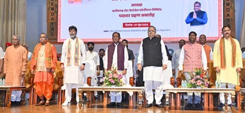 मुख्यमंत्री विष्णुदेव साय ने छत्तीसगढ़ स्टेट बेवरेजेस कॉर्पोरेशन के अध्यक्ष श्रीनिवास मद्दी के पदभार ग्रहण समारोह में हुए शामिल