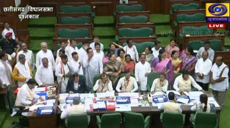 विधानसभा के मानसून सत्र के तीसरे दिन खाद संकट पर विपक्ष ने कृषि मंत्री रामविचार नेताम को घेरा. मंत्री के जवाब से असंतुष्ट विपक्षी दल के सदस्यों ने पहले गर्भगृह में पहुंचकर ‘खाद की कालाबाजारी बंद करो’ जैसे नारे लगाए, इसके बाद सदन से वॉकआउट किया.