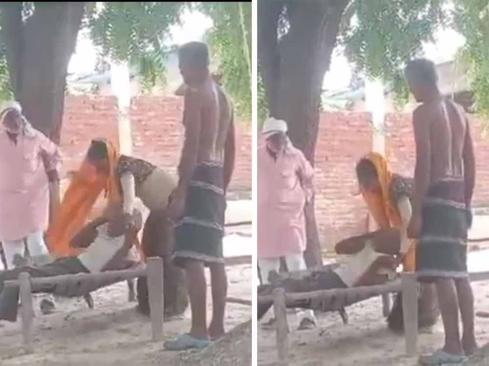 उत्तर प्रदेश के इटावा से एक शर्मसार करने वाला हादसा सामने आया है। यहां पर एक महिला ने अपने वृद्ध ससुर की जमकर पिटाई की है। उसने ससुर को चारपाई पर लिटाकर दोनों पकड़ लिए और फिर जमकर थप्पड़ मार रही है। इस पूरी घटना का वीडियो सोशल मीडिया पर जमकर वायरल हो रहा है।