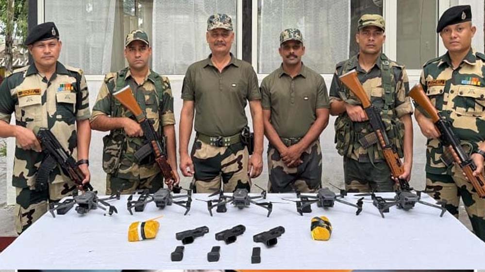 बीएसएफ ने बीते कुछ घंटों में कुल 06 ड्रोन, 03 पिस्टल, पिस्टल के पार्ट्स, 06 मैगजीन और 1.070 किलोग्राम हेरोइन जब्त की है।