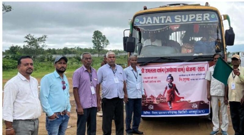 छत्तीसगढ़ शासन द्वारा प्रारंभ श्री रामलला दर्शन योजना के अंतर्गत मनेन्द्रगढ़-चिरमिरी-भरतपुर जिले से चयनित 57 श्रद्धालुओं में से 52 श्रद्धालुओं का दल आज प्रातः कलेक्टर कार्यालय परिसर मनेन्द्रगढ़ से अयोध्या धाम के लिए रवाना हुआ। यह दल अम्बिकापुर रेलवे स्टेशन से विशेष ट्रेन द्वारा श्रीरामलला के दर्शन के लिए पावन अयोध्या भूमि की यात्रा करेगा। राज्य शासन की इस महत्वपूर्ण योजना का उद्देश्य प्रदेश के श्रद्धालुओं को नि:शुल्क अयोध्या यात्रा का सौभाग्य प्रदान करना है। योजना के तहत श्रद्धालुओं को श्री राम जन्मभूमि मंदिर के दर्शन के साथ ही आवास, भोजन, सुरक्षा और चिकित्सकीय सुविधा सहित पूर्ण यात्रा पैकेज उपलब्ध कराया जा रहा है।