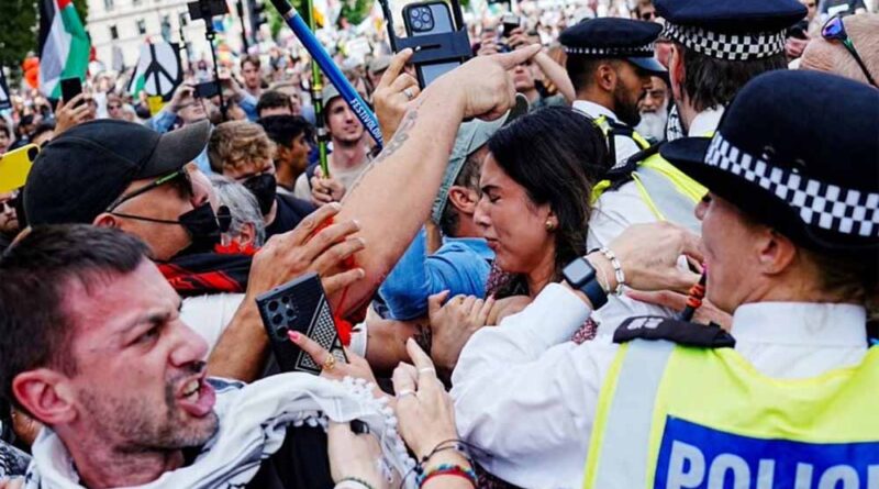 विरोध प्रदर्शन का आयोजन करने वाले समूह डिफेंड अवर ज्यूरीज ने कहा कि लंदन में प्रदर्शन में 1500 लोग शामिल हुए। उन्होंने ‘मैं नरसंहार का विरोध करता हूं, मैं फिलिस्तीनी कार्रवाई का समर्थन करता हूं’ जैसे नारे लिखे हुए पोस्टर लिए हुए थे। कुछ ही मिनटों में पुलिस ने प्रदर्शनकारियों को गिरफ्तार करना शुरू कर दिया, जबकि राहगीर ‘शर्म करो’ और ‘मेट पुलिस, एक पक्ष चुनो, न्याय या नरसंहार’ के नारे लगा रहे थे।