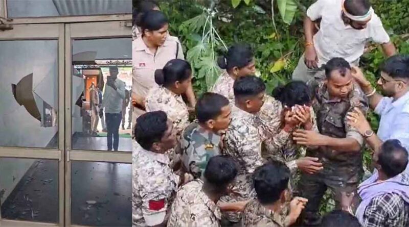 बीते शनिवार देर शाम जगदलपुर सर्किट हाउस में हुए बवाल का मामला अब सियासी तूल पकड़ चुका है. वन मंत्री केदार कश्यप पर कर्मचारियों से गाली-गलौज और मारपीट के आरोप लगे थे, जिसके बाद मामला थाने तक पहुंचा. इस घटना के विरोध में आज कांग्रेसियों ने भानपुरी स्थित वन मंत्री केदार कश्यप के निजी कार्यालय का घेराव किया. प्रदर्शन के दौरान एक महिला पुलिसकर्मी घायल हो गई. वहीं भाजपा ने कांग्रेसियों पर मंत्री कार्यालय में तोड़फोड़ करने का आरोप लगाया है.