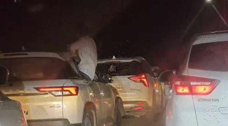 कार की विंडो पर बैठकर स्टंटबाजी, लगा जाम