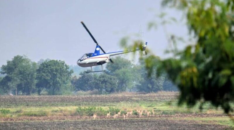 हेलीकॉप्टर और बोमा से कृष्ण मृगों और नीलगायों को पकड़ने का अभियान जारी