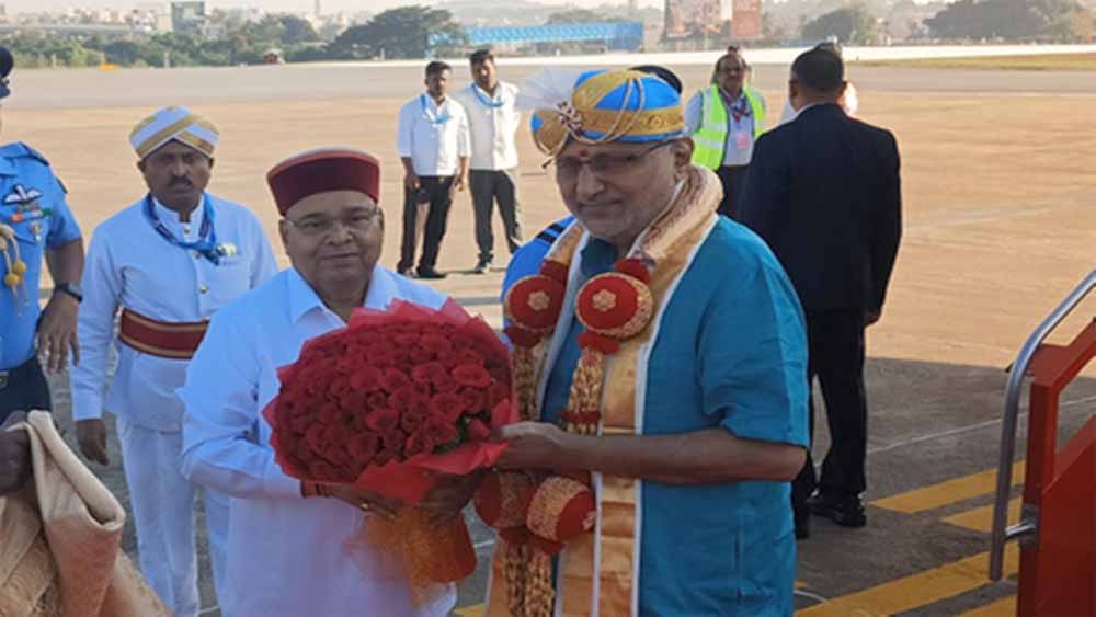 बेंगलुरु आगमन पर उपराष्ट्रपति राधाकृष्णन का राज्यपाल गहलोत ने किया अभिनंदन