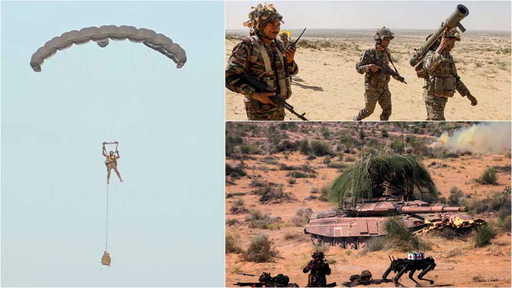 रेत के बीच टैंकों और पैराट्रूपर्स ने दिखाया दम
