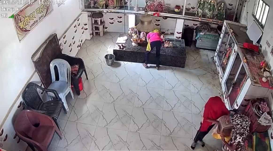 CCTV में कैद वारदात: लड़कियों ने मंदिर की दानपेटी चुराई