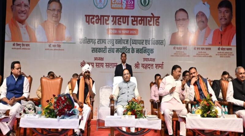 मुख्यमंत्री छत्तीसगढ़ राज्य लघु वनोपज (व्यापार एवं विकास) सहकारी संघ मर्यादित के नवनियुक्त अध्यक्ष और उपाध्यक्ष के पदभार ग्रहण कार्यक्रम में हुए शामिल