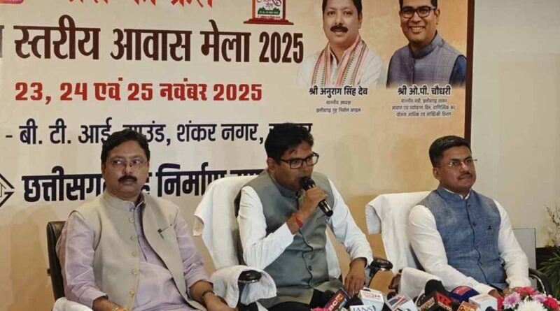 आवासीय योजनाओं की पूरी जानकारी एक ही स्थान पर उपलब्ध कराने के लिए छत्तीसगढ़ गृह निर्माण मंडल राज्य स्तरीय आवास मेला आयोजित कर रहा है। यह मेला 23, 24 और 25 नवंबर को राजधानी रायपुर के शंकर नगर स्थित बीटीआई ग्राउंड में होगा। मेले को लेकर आज वित्त मंत्री ओपी चौधरी और हाउसिंग बोर्ड अध्यक्ष अनुराग सिंहदेव ने संयुक्त प्रेस कॉन्फ्रेंस की। इस कॉन्फ्रेंस में हाउसिंग बोर्ड के कमिश्नर अवनीश शरण भी मौजूद रहे।