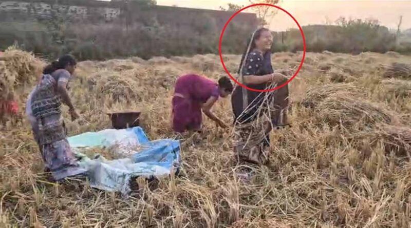 पुष्पा नेताम ने खेत में काटी धान, मंत्री परिवार की भागीदारी से किसानों में जोश