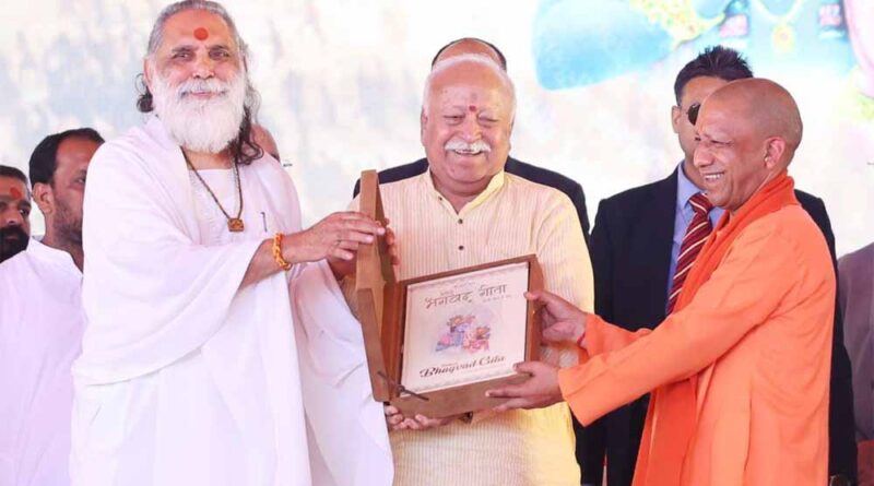सीएम योगी ने कहा कि राष्ट्र प्रथम के भाव के साथ हर पीड़ित संग खड़ा होना (जो भारत को परम वैभव तक ले जाने में सहायक हो सकता है) राष्ट्रीय स्वयंसेवक संघ की प्रेरणा है। आरएसएस ने पिछले 100 वर्षों में सेवा के साथ कोई सौदेबाजी नहीं की, लेकिन कुछ लोगों ने दुनिया व भारत में सेवा को ही सौदे के माध्यम बनाया है। वे लोभ, लालच और दबाव से भारत की डेमोग्राफी को बदलने के लिए छल व छद्म का सहारा लेकर अपना ताना-बाना बदलकर भारत की आत्मा पर प्रहार करने का प्रयास कर रहे हैं। इन स्थितियों में भगवान की वाणी श्रीमद्भगवदगीता नई प्रेरणा बन सकती है।
