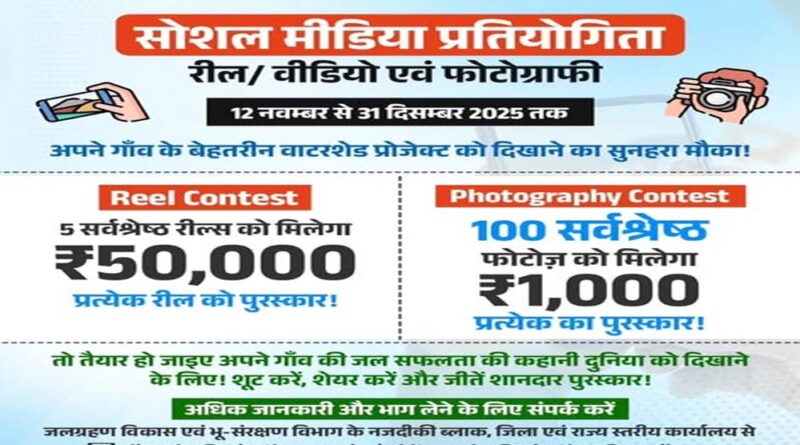 ग्रामीण विकास मंत्रालय, भारत सरकार के निर्देशन में राज्य एवं केंद्र शासित प्रदेश सरकारों के सहयोग से जलग्रहण विकास कार्यों में जनभागीदारी को बढ़ावा देने के उद्देश्य से भूमि संसाधन विभाग द्वारा ’वाटरशेड महोत्सव’ का आयोजन किया जा रहा है। इसी क्रम में महासमुंद जिले में वाटरशेड महोत्सव के अंतर्गत विभिन्न गतिविधियों के साथ ’सोशल मीडिया प्रतियोगिता’ का आयोजन किया जाएगा। प्रतियोगिता में रील विजेता को 50 हजार रुपए एवं फोटोग्राफ विजेता को एक हजार रुपए की पुरस्कार राशि प्रदान की जाएगी।