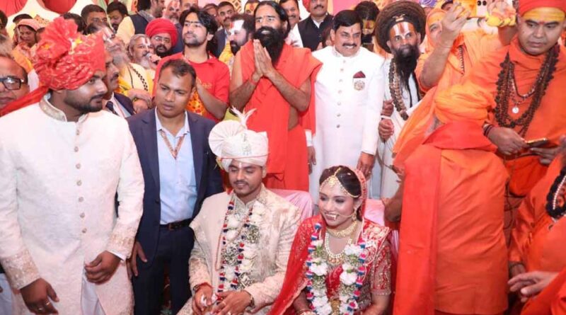 सामूहिक विवाह समारोह में सीएम के बेटे ने लिए सात फेरे, बाबा रामदेव और बागेश्वर धाम सरकार की मौजूदगी
