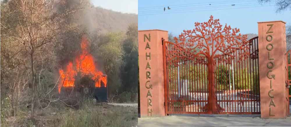 राजस्थान की राजधानी जयपुर स्थित आमेर के नाहरगढ़ बायोलॉजिकल पार्क में रविवार को लॉयन सफारी के दौरान बड़ा हादसा होते-होते टल गया। जानकारी के अनुसार, सैलानियों से भरी एक सफारी बस में अचानक शॉर्ट सर्किट के कारण आग लग गई। आग इतनी तेज थी कि लपटें दूर से भी दिखाई दे रही थीं। घटना के समय करीब 30 पर्यटक जंगल की सैर कर रहे थे। अचानक आग लगने से अफरा-तफरी मच गई और पर्यटक जान बचाने के लिए गाड़ी से उतरने लगे।
