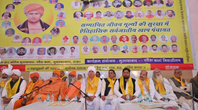मुजफ्फरनगर में सर्वजातीय खाप पंचायत में वक्ताओं ने गिरते सामाजिक परिवेश और राजनीतिक स्तर पर चिंता व्यक्त की। लोगों से व्यर्थ खर्च पर रोक लगाकर जरूरतमंद बच्चों की शिक्षा में आवश्यक मदद करने का आह्वान किया गया।