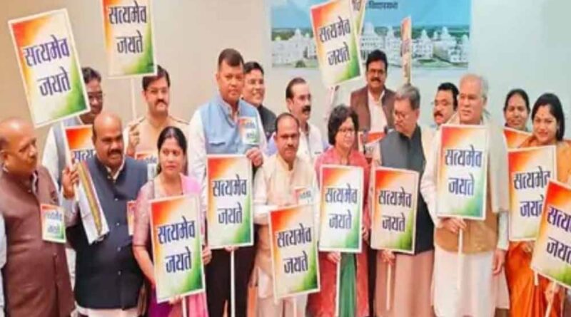 छत्तीसगढ़ विधानसभा के शीतकालीन सत्र के चौथे दिन कांग्रेस के सभी विधायक ‘सत्यमेव जयते’ की तख्ती लेकर सदन में पहुंचे थे. विधायक नेशनल हेराल्ड मामले में सोनिया गांधी और राहुल गांधी के खिलाफ ईडी की कार्रवाई का विरोध कर रहे थे. सत्ता पक्ष और विपक्ष के विधायकों के बीच तीखी बहस हुई.