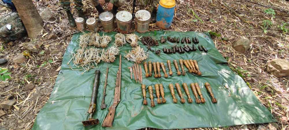 डीजीएन डिवीजन में सक्रिय नक्सलियों ने चट्टानों के अंदर प्लास्टिक ड्रम और स्टील डिब्बो में 1 भरमार बंदूक नग कंपनी निर्मित मोर्टार, 22 नग मोर्टार सेल, 150 नग डेटोनेटर, 18 नग तीर बम्ब और अन्य सामग्रियों छिपा रखा था, जिसे जवानों ने अभियान के दौरान बरामद किया है. इस कार्रवाई से नक्सलियों के साजिश नाकाम हो गई.