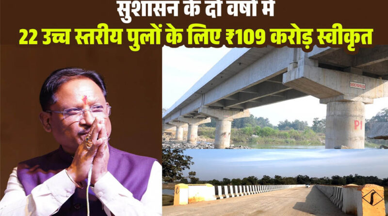 मुख्यमंत्री विष्णुदेव साय ने जशपुर जिले में 22 उच्चस्तरीय पुलों के निर्माण के लिए 109 करोड़ 09 लाख रुपये की मंजूरी दी है। ये पुल जिले के प्रमुख मार्गों और नदियों-नालों पर बनाए जा रहे हैं, जिससे वर्षभर निर्बाध आवागमन सुनिश्चित होगा। इसके साथ ही गांव-टोला और पारा को जोड़ने के उद्देश्य से 215 छोटे पुल-पुलिया निर्माण हेतु 20 करोड़ 93 लाख रुपये स्वीकृत किए गए हैं।