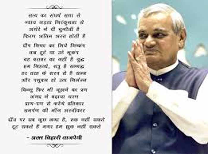 'टूट सकते हैं मगर हम झुक नहीं सकते…' ये पंक्तियां सिर्फ एक कविता नहीं हैं, बल्कि एक सोच, एक संकल्प और एक जीवन-दर्शन हैं। आज अटल बिहारी वाजपेयी की 101वीं जयंती पर ये शब्द फिर से चर्चा में हैं, लेकिन इस बार वजह कुछ खास है। वजह है प्रधानमंत्री नरेंद्र मोदी की दशकों पुरानी निजी डायरी का वह हस्तलिखित पन्ना, जिसमें अटल की यह कविता लिखी है। यह पन्ना केवल यादों का हिस्सा नहीं है, बल्कि इस बात का सबूत है कि कैसे विचार एक व्यक्ति से निकलकर पीढ़ियों तक देश की दिशा तय करते हैं। उस दौर की कल्पना कीजिए, जब नरेंद्र मोदी एक युवा कार्यकर्ता थे। न पद था, न सत्ता, बस संगठन, संघर्ष और सीखने की ललक। ऐसे समय में अटल बिहारी वाजपेयी जैसे नेता सिर्फ मंच से भाषण नहीं देते थे, वे अपने शब्दों से रास्ता दिखाते थे। अटल बिहारी की कविता, जिसमें सत्ता से सत्य के संघर्ष की बात है और अन्याय के सामने न झुकने का साहस है, उसी युवा मन में उतर गई। नरेंद्र मोदी ने उन शब्दों को सिर्फ पढ़ा नहीं, उन्हें अपनी साधना बना लिया।