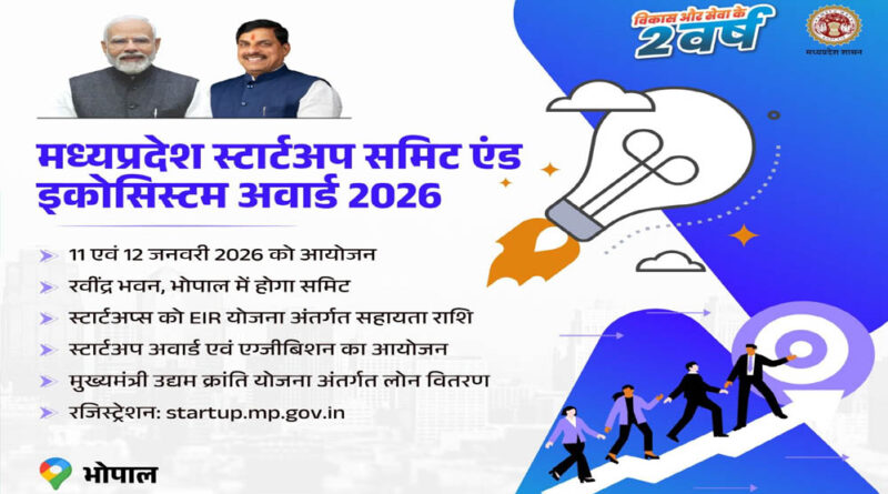 मध्यप्रदेश स्टार्ट-अप समिट 11 और 12 जनवरी को