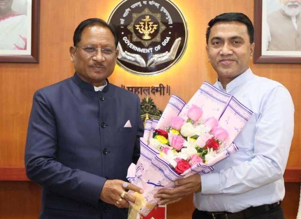छत्तीसगढ़राज्य मुख्यमंत्री विष्णुदेव साय ने गोवा के मुख्यमंत्री डॉ. प्रमोद सावंत से की सौजन्य भेंट January 9, 2026 Lalit Sahu रायपुर मुख्यमंत्री विष्णुदेव साय ने आज गोवा प्रवास के दौरान गोवा के मुख्यमंत्री डॉ. प्रमोद सावंत से सौजन्य मुलाकात की। इस अवसर पर दोनों मुख्यमंत्रियों के बीच आपसी सहयोग और साझा हितों से जुड़े विषयों पर आत्मीय चर्चा हुई।