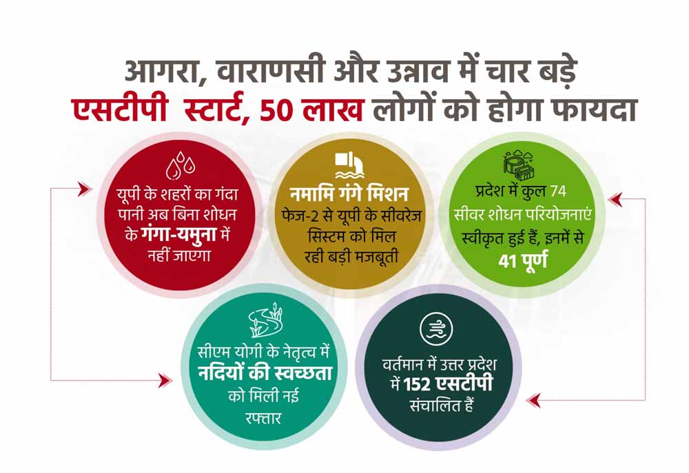 वर्तमान में उत्तर प्रदेश में 152 सीवेज ट्रीटमेंट प्लांट (STP) संचालित हैं, जो बड़ी मात्रा में सीवेज को शुद्ध कर नदियों में प्रवाहित होने से पहले उसे पर्यावरण के अनुकूल बना रहे हैं। इन संयंत्रों के माध्यम से गंगा-यमुना की स्वच्छता के साथ-साथ जनस्वास्थ्य को भी सुरक्षित किया जा रहा है।