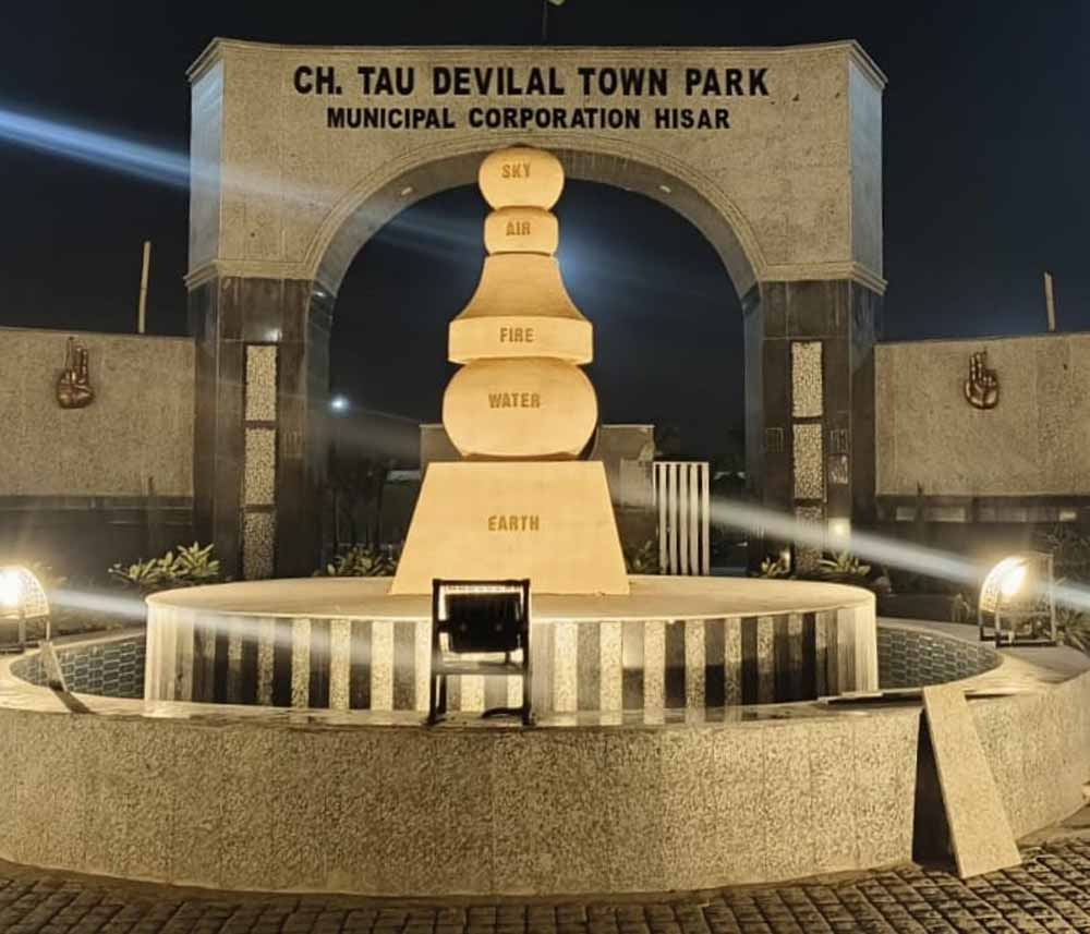 ताऊ देवी लाल टाउन पार्क पंचतत्व (पंचमहाभूत) थीम पर आधारित है, जहां प्रकृति के पांच तत्व अपनी-अपनी अदृश्य ध्वनियों और स्वरूपों में सजीव हो उठते हैं। झील में लहराता जल, पेड़ों की शाखाओं में बहती वायु, रोशनी में झलकती अग्नि, धरती की हरियाली और खुला आकाश सब मिलकर सृष्टि के संतुलन और जीवन के मूल संदेश को प्रतिध्वनित करते है।