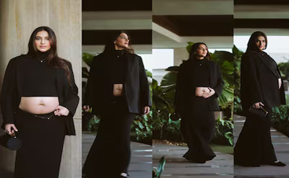 बॉलीवुड की मशहूर अभिनेत्री सोनम कपूर दूसरी बार मां बनने वाली हैं। उन्होंने कुछ समय पहले ही इस बात की जानकारी दी थी। सोमवार को अभिनेत्री ने अपना बेबी बंप फ्लॉन्ट करते हुए शानदार तस्वीरें इंस्टाग्राम पर शेयर की। शेयर की गई तस्वीरों में सोनम काले रंग के आउटफिट में नजर आ रही हैं। उन्होंने क्रॉप टॉप पहना है, जिसके साथ लंबी स्कर्ट और ऊपर से कोट डाला हुआ है। लुक को और भी आकर्षक बनाने के लिए उन्होंने काला बैग भी लिया है। पोस्ट कर सोनम ने लिखा, "मम्मा का डे आउट इवेंट के लिए तैयार।" इंस्टाग्राम पर सोनम का लुक काफी आकर्षक लग रहा है, वे प्रेग्नेंसी के दौरान भी फैशन को बिल्कुल नहीं छोड़ रही हैं और कॉन्फिडेंट तरीके से अपनी खूबसूरती दिखा रही हैं।
