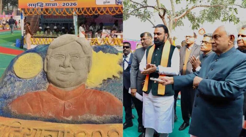 ‘समृद्धि यात्रा’ में बालू से बनी अपनी तस्वीर देख मुस्कुराए CM नीतीश कुमार
