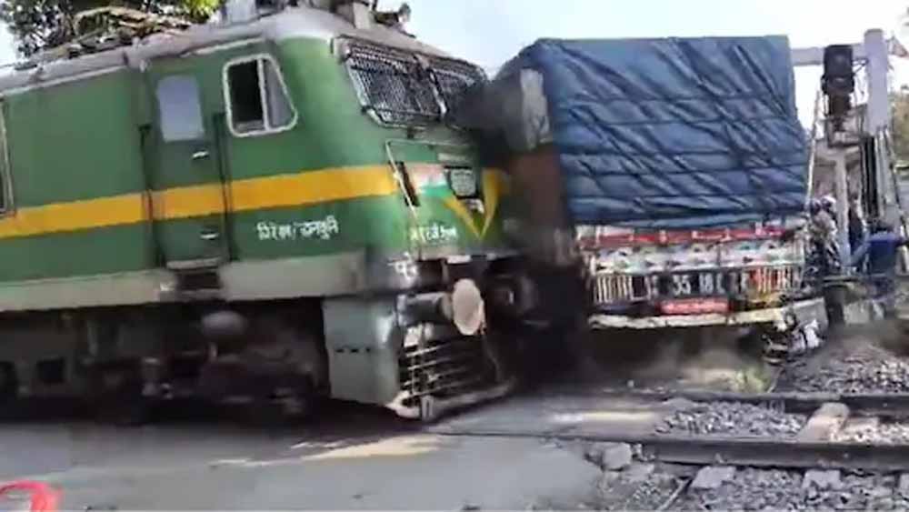 रेल फाटक खुला और तबाही: देवघर में ट्रेन-ट्रक टकराव, बाइकें चकनाचूर