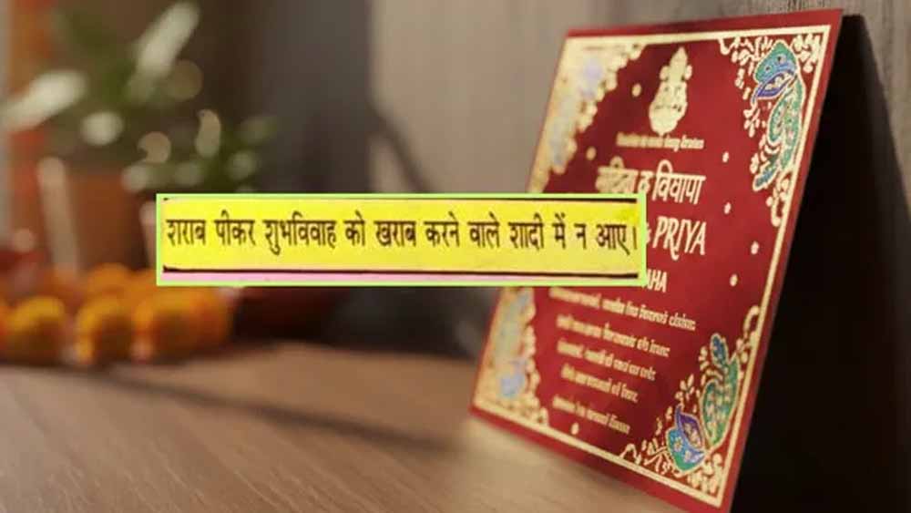 शादी का यह कार्ड जिन भी लोगों को मिला, उसे पढ़कर वो मुस्कुरा भी रहे हैं और ठिठक भी। वजह है कार्ड में आमंत्रण के साथ एक शर्त। आमतौर पर जिन कार्डों में ‘डिनर के बाद’ का संकेत ढूंढा जाता है, वहां लाइन छपी है-शराब पीकर शुभ विवाह को खराब करने वाले शादी में न आएं।