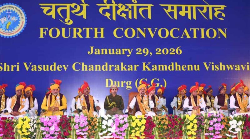 दाऊ वासुदेव चन्द्राकर कामधेनु विश्वविद्यालय दुर्ग का चतुर्थ दीक्षांत समारोह आज विश्वविद्यालय परिसर में राज्यपाल रमेन डेका की गरिमामयी उपस्थिति में संपन्न हुआ। समारोह में 1536 छात्रों को पशुचिकित्सा एवं पशुपालन, दुग्ध प्रौद्योगिकी एवं मात्स्यिकी संकाय में स्नातक, स्नातकोत्तर तथा पीएचडी उपाधि प्रदान की गई। 45 उपाधि धारकों को विश्वविद्यालय स्वर्ण पदक तथा पशुचिकित्सा एवं पशुपालन में 08 स्नातक उपाधि धारकों को पंडित तीरथ प्रसाद मिश्रा मेमोरियल स्वर्ण पदक प्रदान किया गया।