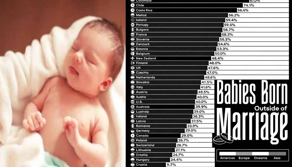 ओईसीडी (OECD) के नए आंकड़ों के अनुसार, विश्व के कई देशों में औसतन लगभग 43% बच्चे विवाह के बाहर पैदा हो रहे हैं। यानी बिना शादी के महिलाएं मां बन रही हैं। आइए जानते हैं कि इस मामले में कौन-से देश सबसे आगे हैं…